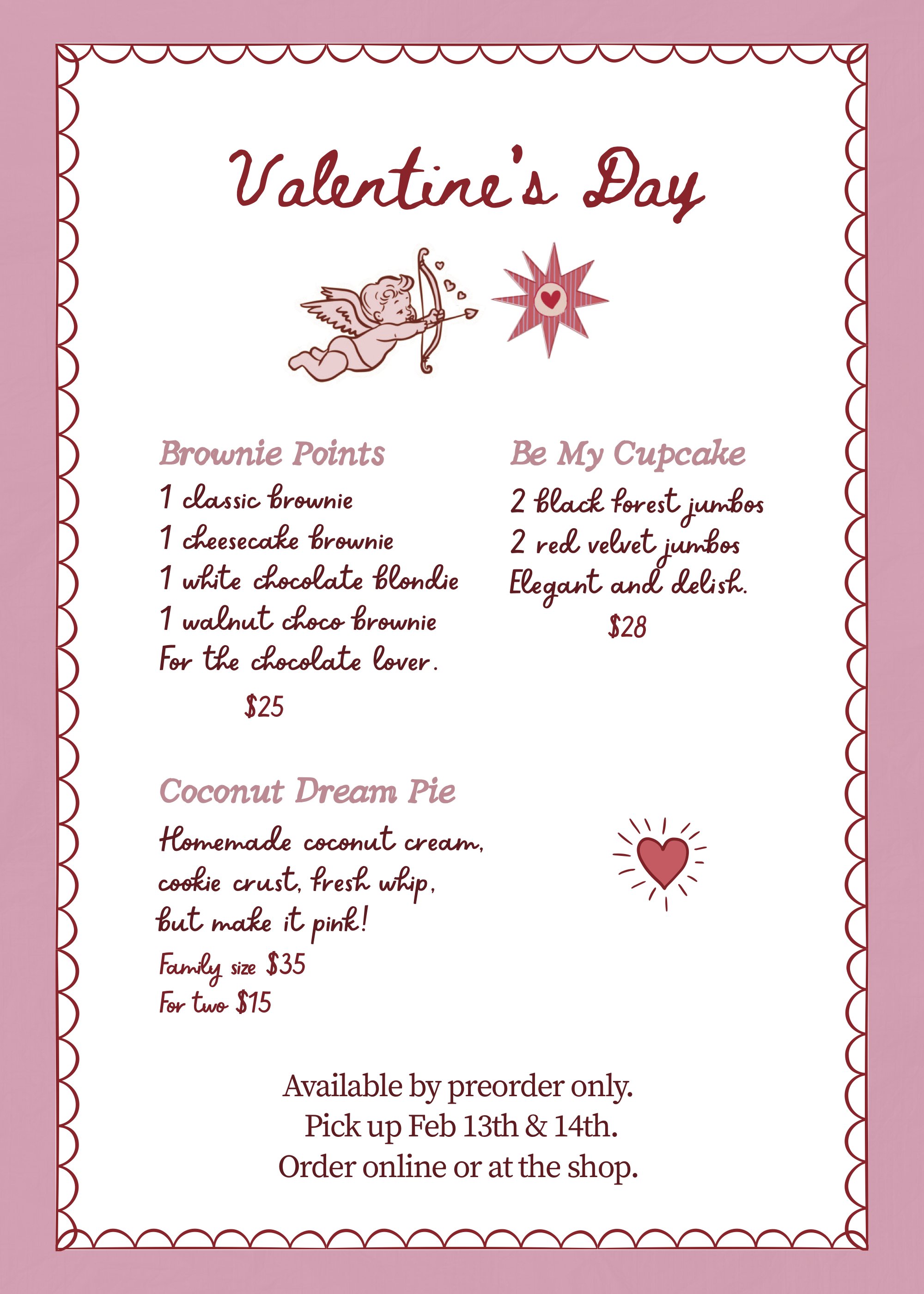 If you’re looking for a full cake or pie, or larger quantity of something, preorder is recommended. You can order from our cake & pie shop, in-store or by phone.